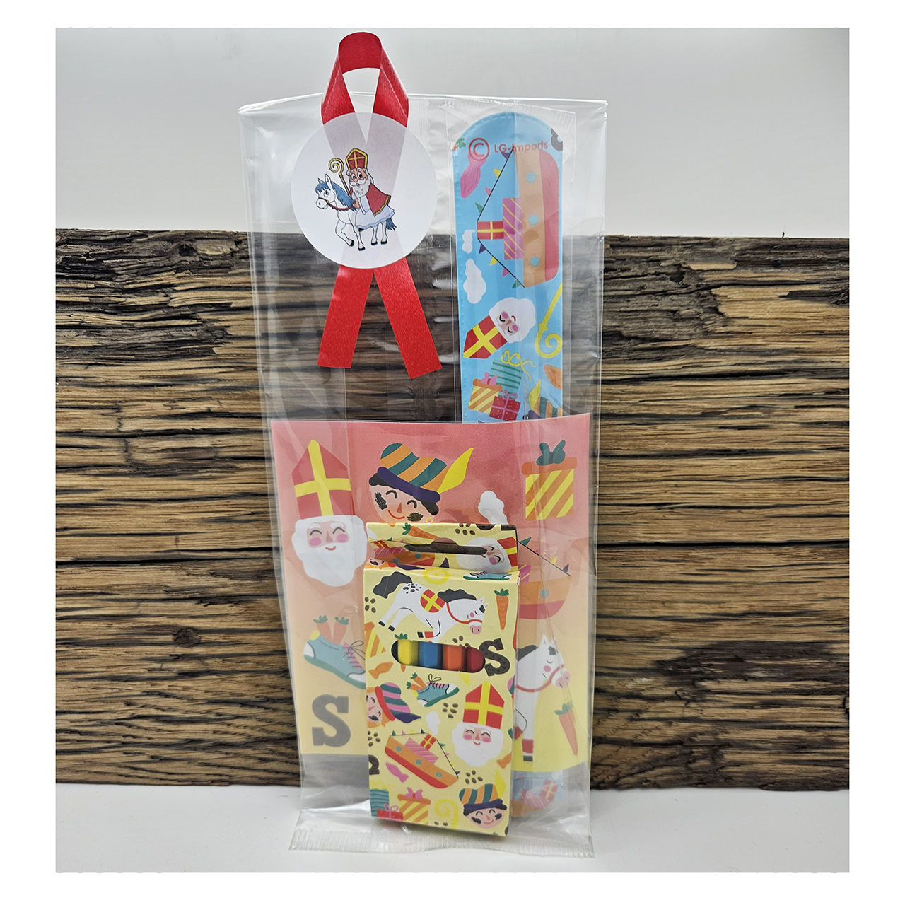 Sinterklaas traktatie klaparmband stickervel + potloodjes is een leuk schoencadeautje of traktatie voor op school. Kies zelf of je het zelf in wil pakken of ze kant en klaar wil bestellen.